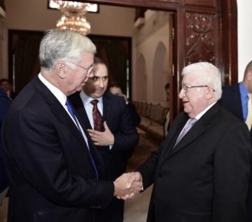 بحث رئيس الجمهورية فؤاد معصوم مع وزير الدفاع البريطاني مايكل فالون مجمل التطورات الامنية والسياسية لاسيما الاستعدادات التي تجري لتحرير مدينة الموصل من عصابات داعش الارهابية