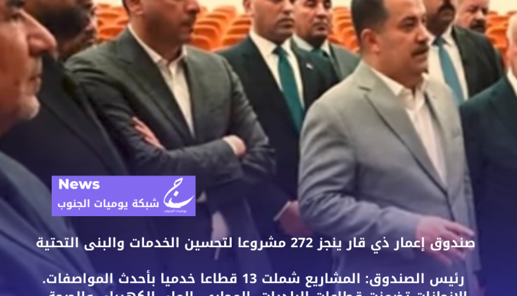 صندوق إعمار ذي قار ينجز 272 مشروعا لتحسين الخدمات والبنى التحتية