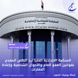 أخبار العراق المحكمة الاتحادية العليا ترد الطعن المقدم بقوانين العفو العام والأحوال الشخصية وإعادة العقارات بواسطة فهد ابراهيم البدري في فبراير 11, 2025 0 172 شارك المحكمة الاتحادية العليا ترد الطعن المقدم بقوانين العفو العام والأحوال الشخصية وإعادة العقارات 0 172 شارك FacebookTwitterGoogle+ReddItWhatsAppPinterestالبريد الإلكتروني