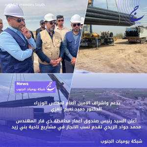 أعلن السيد رئيس صندوق اعمار محافظة ذي قار المهندس محمد جواد الزيدي تقدم نسب الانجاز في مشاريع ناحية بني زيد