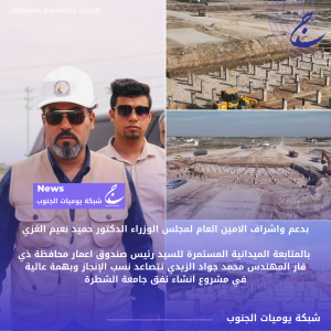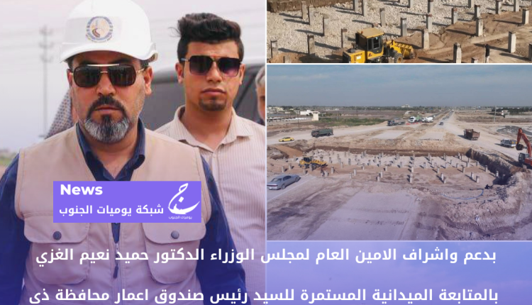 بدعم واشراف الامين العام لمجلس الوزراء الدكتور حميد نعيم الغزي بالمتابعة الميدانية المستمرة للسيد رئيس صندوق اعمار محافظة ذي قار المهندس محمد جواد الزيدي تتصاعد نسب الإنجاز وبهمة عالية في مشروع انشاء نفق جامعة الشطرة